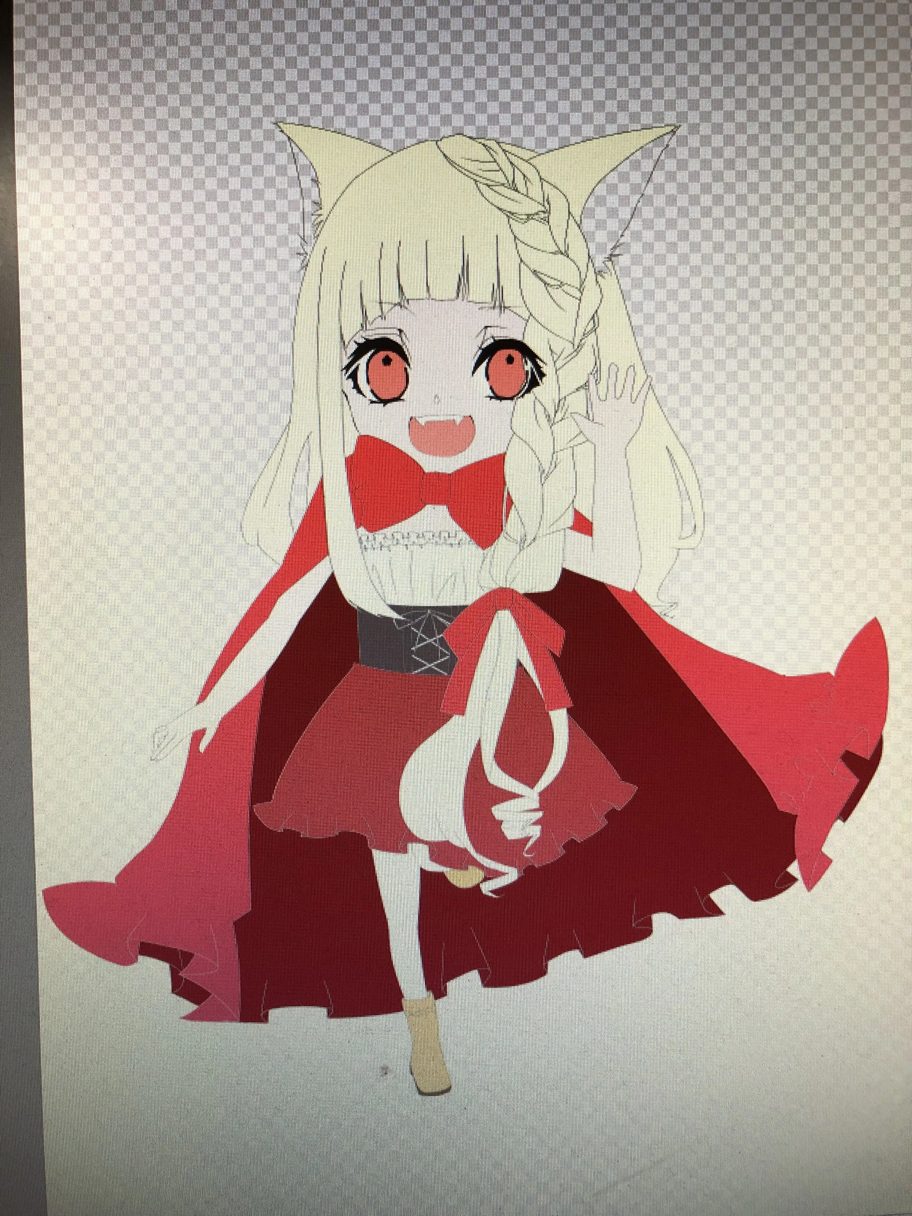3等身デフォルメのイラストはずんずん進んで色分けに入りました!!ここまで来たらこの子が何者なのか、わかるのではないでしょうか✧٩(ˊωˋ*)و✧