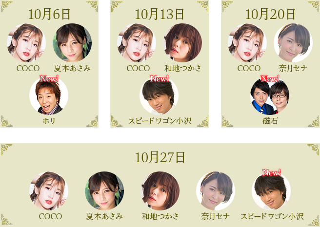 COCO(10月6日、13日、20日、27日出演)