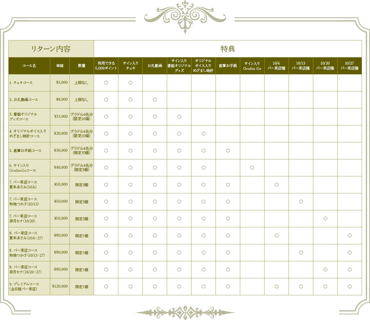 【8-1】10月6日(COCO、夏本あさみ)、特番10月27日、バー来店コース 80,000円/限定1名様