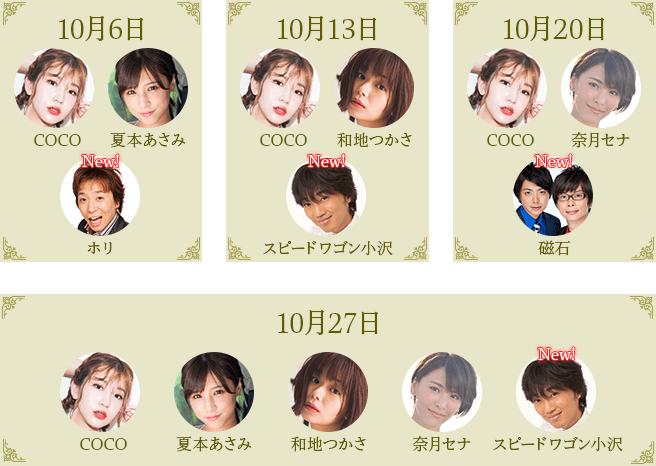 10月27日 スピードワゴン小沢一敬、COCO、夏本あさみ、和地つかさ、奈月セナ