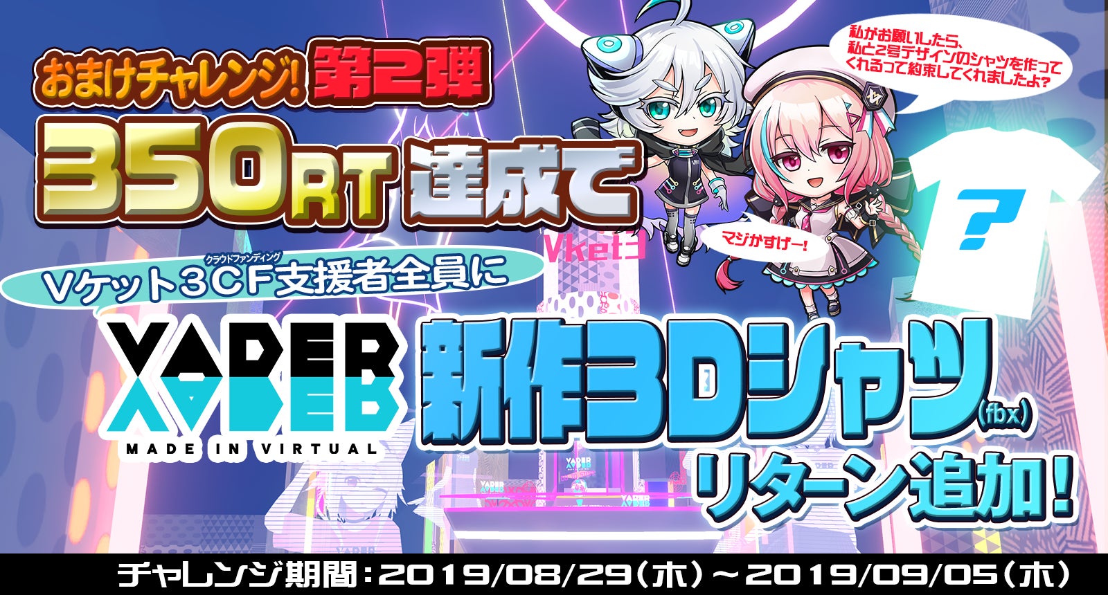 先日からバーチャルマーケット3のTwitterアカウントにて始まりました、リツイート数達成ですべてのプランにおまけが追加されていく「おまけチャレンジ」!