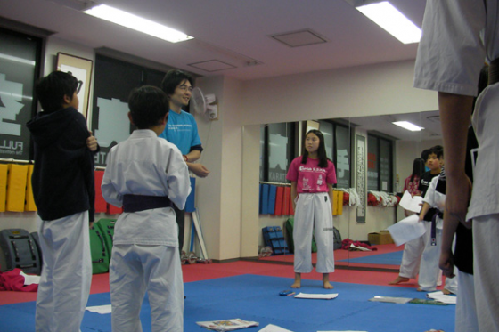 3月12日 カラテキッズの先輩、松山君が出演する子ども達に指導を行なっている様子。