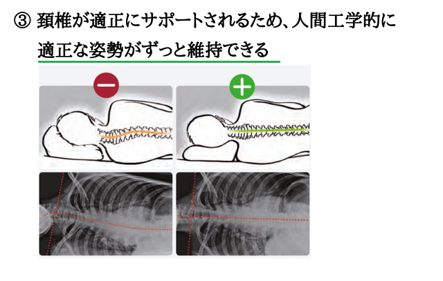 3:首の骨が適正にサポートされるため、人間工学に基づいた適正な姿勢がずっと維持できる