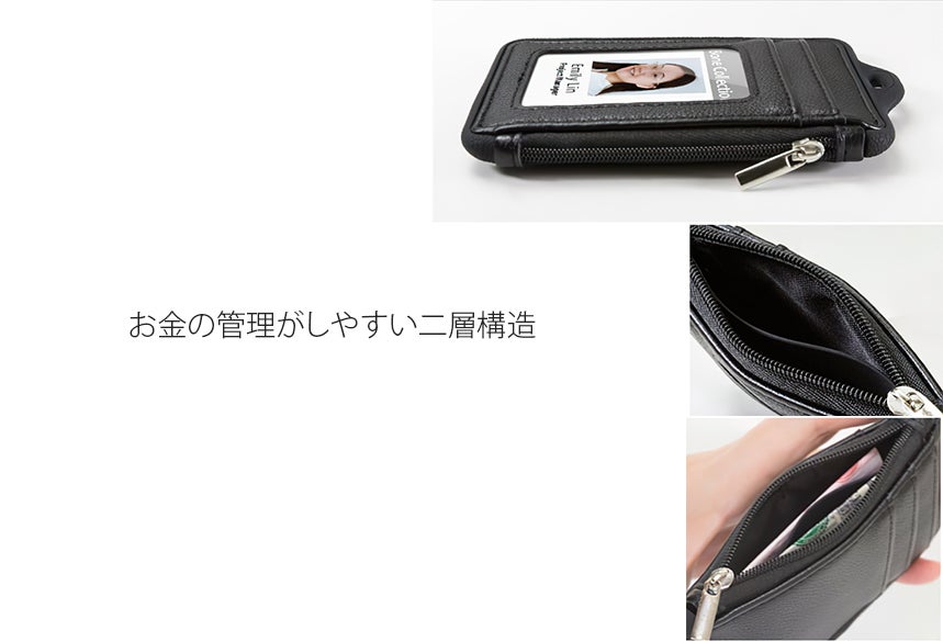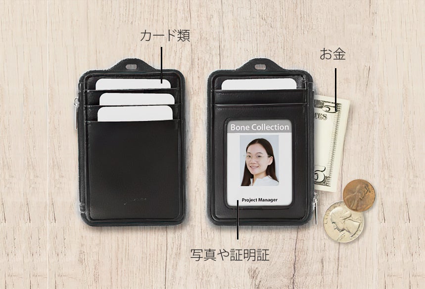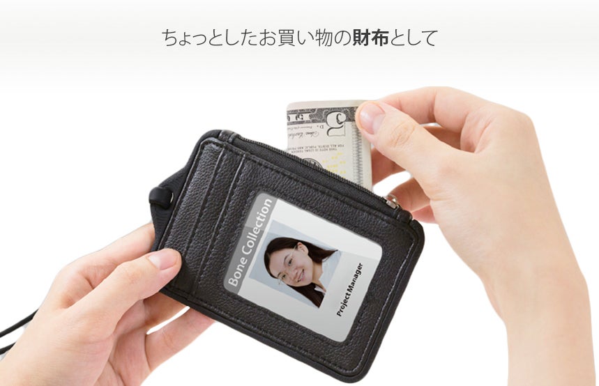 Lanyard Wallet(ランヤードウォレット)は、様々なシーンで便利になるようにデザインしています。財布として、名刺入れとして、クレジットカードやICカード入れ、社員証など、これ一つですべてのシーンをカバーできます。