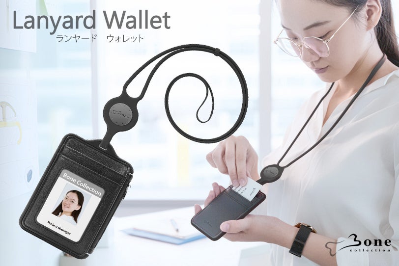Lanyard Wallet(ランヤードウォレット)はBoneが従来の財布に対して、ハンズフリー「手ぶら」、コンパクト「こじんまり」の実現をコンセプトにしデザインした新しい財布の形です。