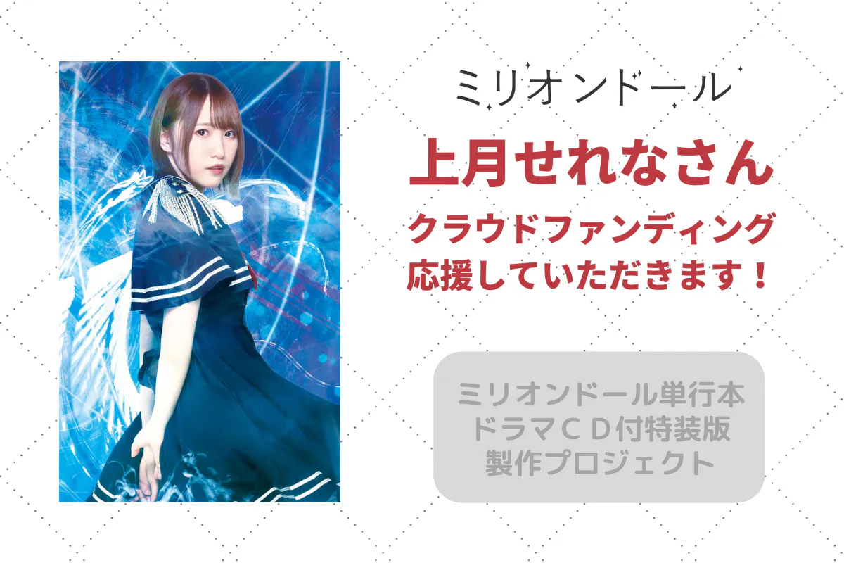 ・この度、連載時からミリオンドールを読んでいた愛読者であり現役アニソンソロシンガーの上月せれなさんに、このクラウドファンディングプロジェクトを応援・協力していただくことになりました!