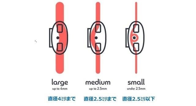 ・スモール(直径2.5mm以下):アップル製イヤホン、Beatsイヤホン/ヘッドホン、その他すべての非編組イヤホン/ヘッドホン