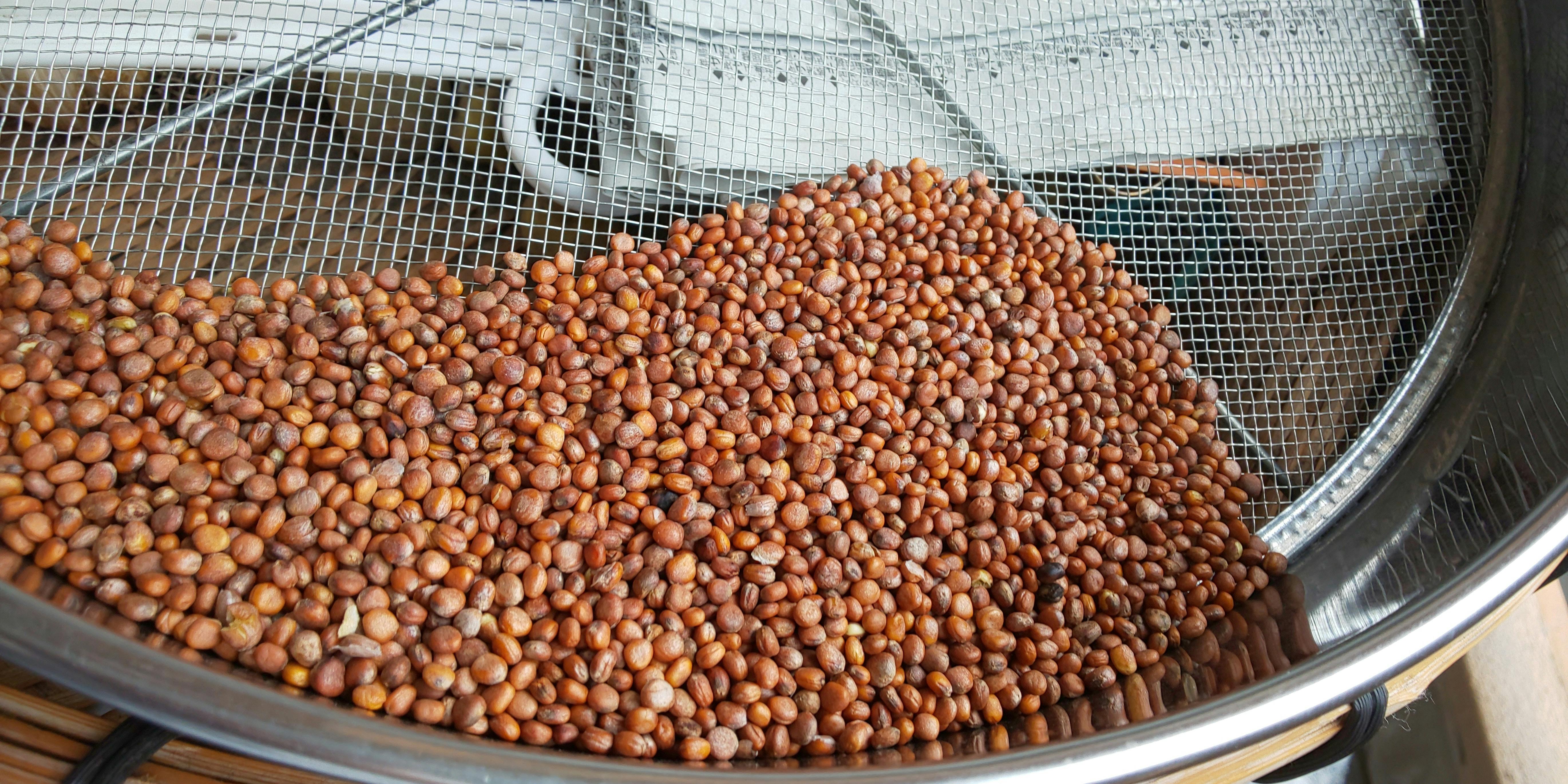 9月末~10月末にかけて間引きを三回実施し、発芽した大根菜を一回目一株七本にして、二回目で三本に、三回目で1本にします。