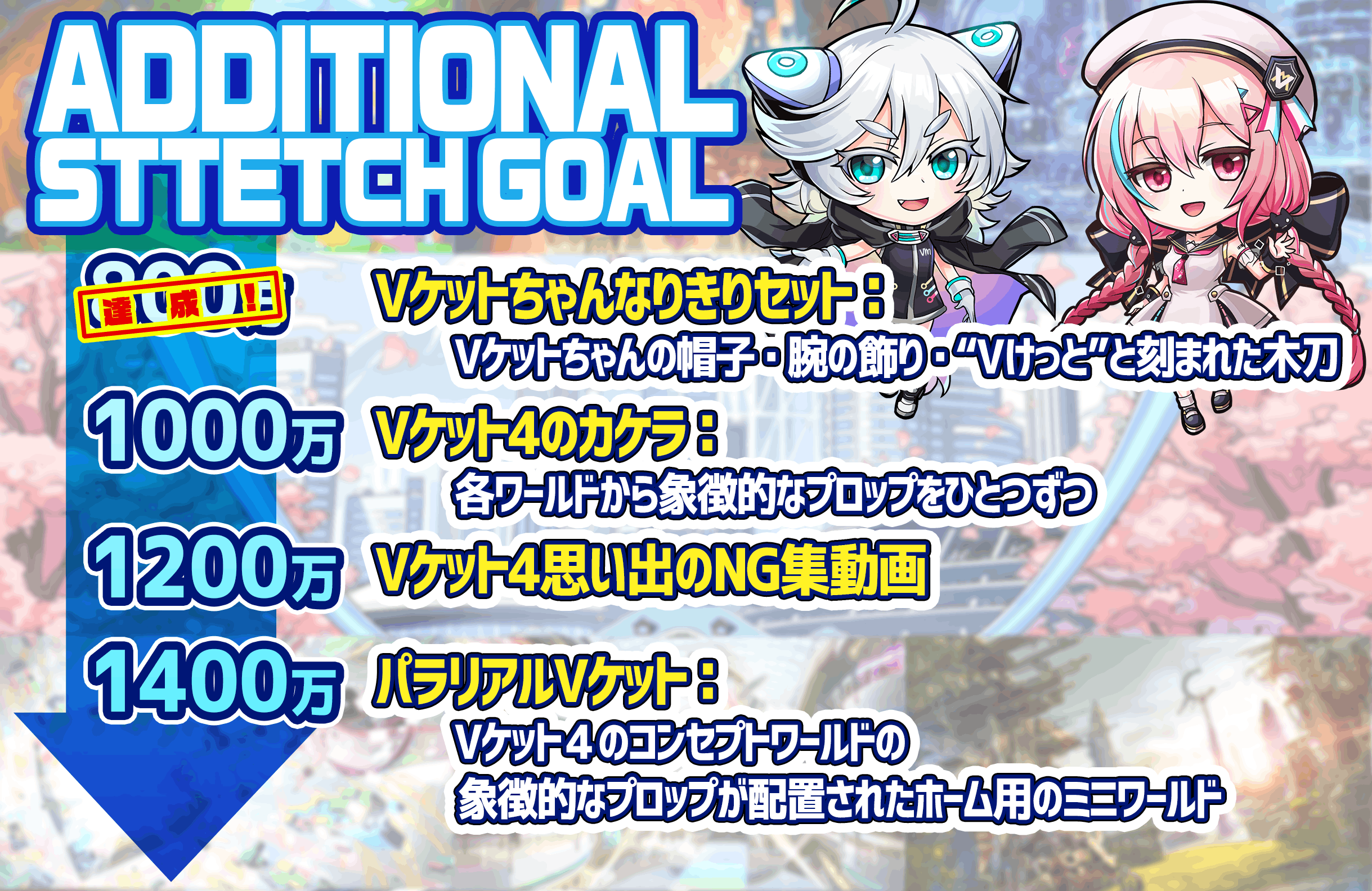 ストレッチゴール2を達成で、皆さんのリターンに「Vケットちゃんなりきりセット」が追加されましたので、楽しみに、お待ちください。