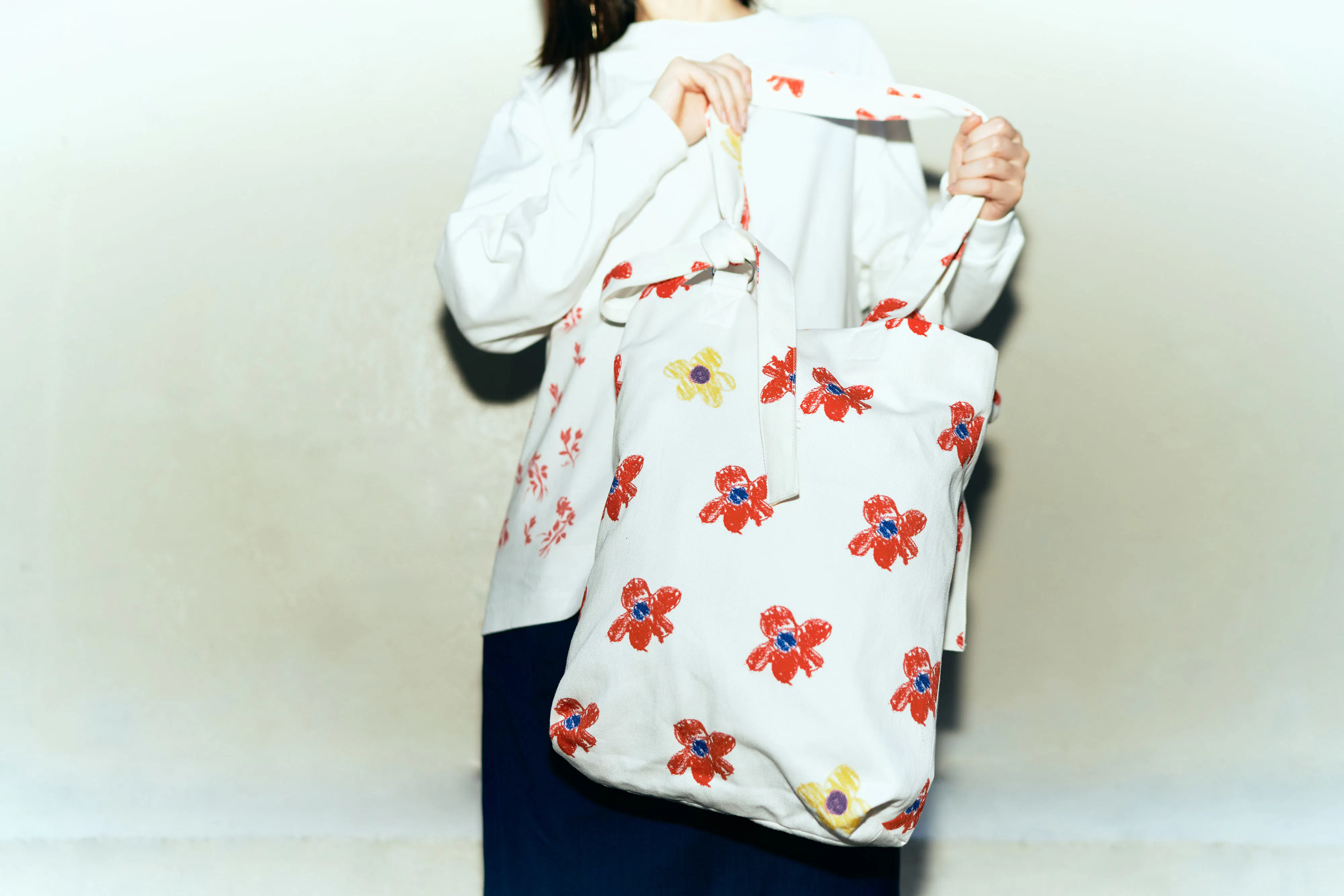 実際のショーで出す服に使われている生地を使用し、コレクションの世界観を感じてもらいやすいトートバッグです。
