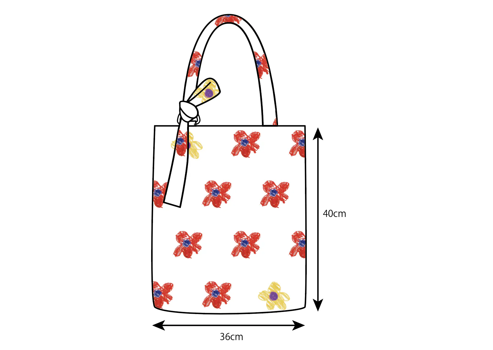 サイズ : H 40cm x W 36cm x D 5cm 、内ポケット : H 14cm x W 18cm、持ち手長さ調節可能