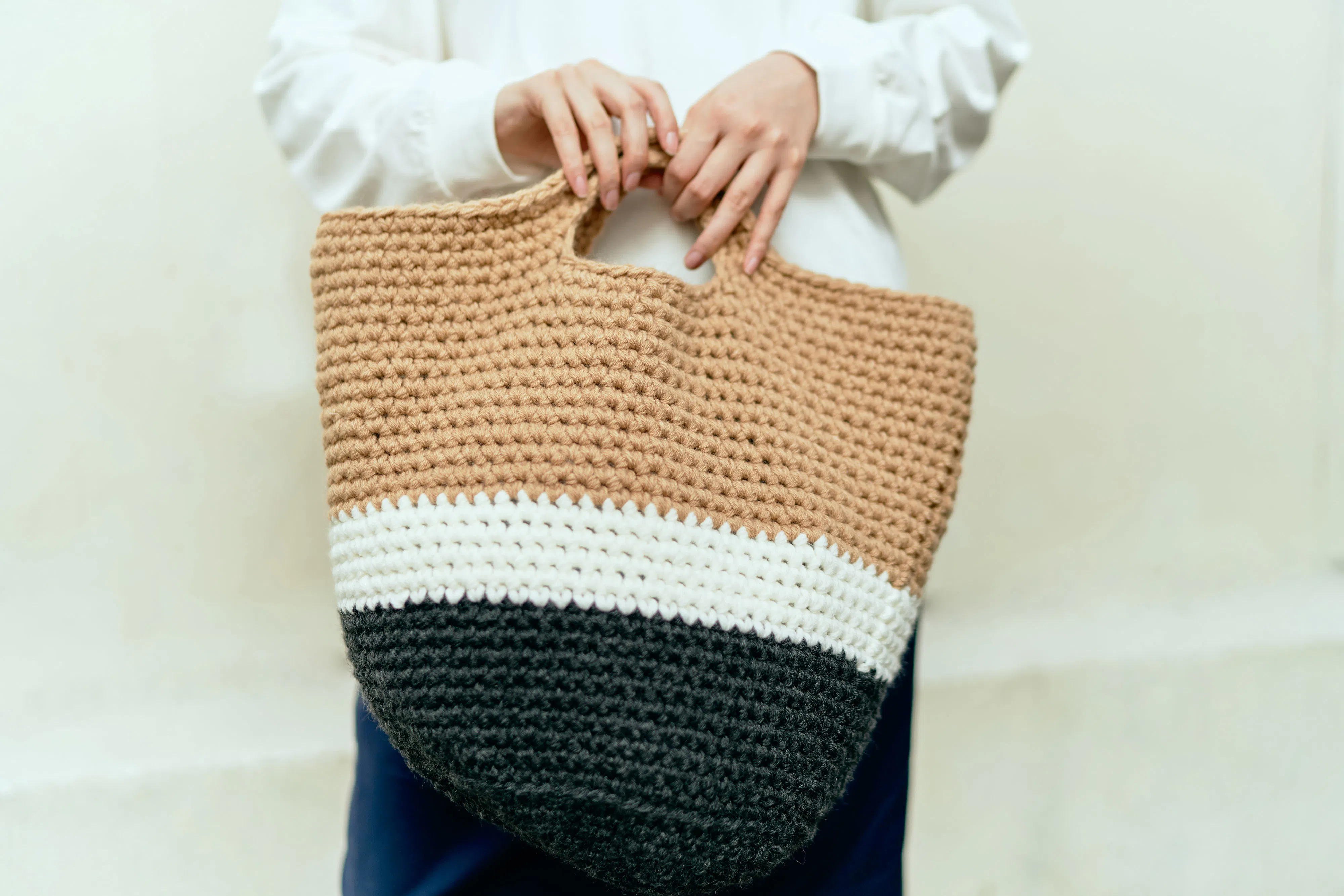 幼少期から編み物を始め、パリの服飾学校のニット科を卒業した青木未来乃自身が1つずつかぎ針で手編みするニットバッグ。支援してくださる方ご自身で色を選んでいただけるセミオーダー形式。
