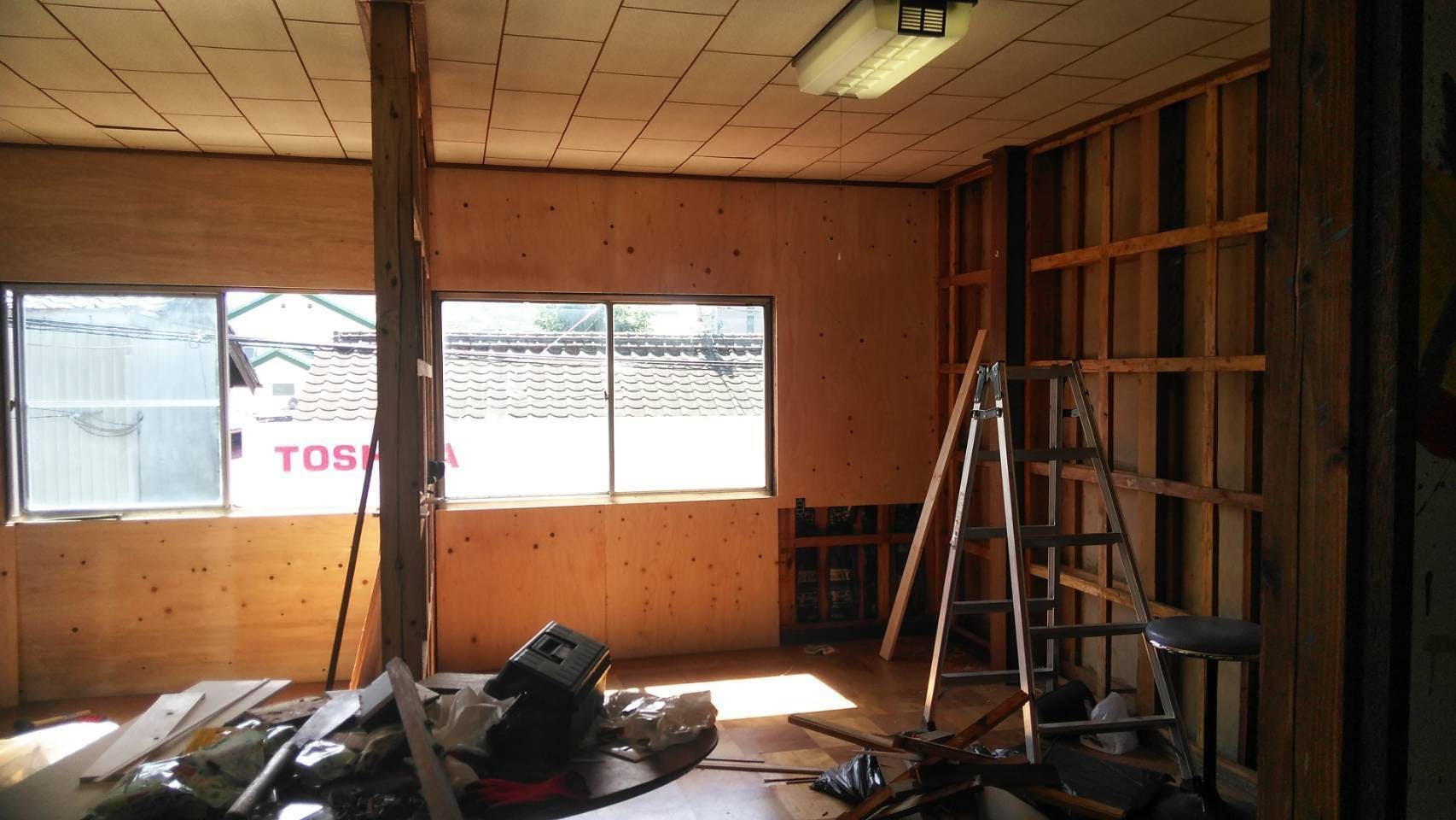 ホームセンターで買ってきたコンパネを貼っていきます。