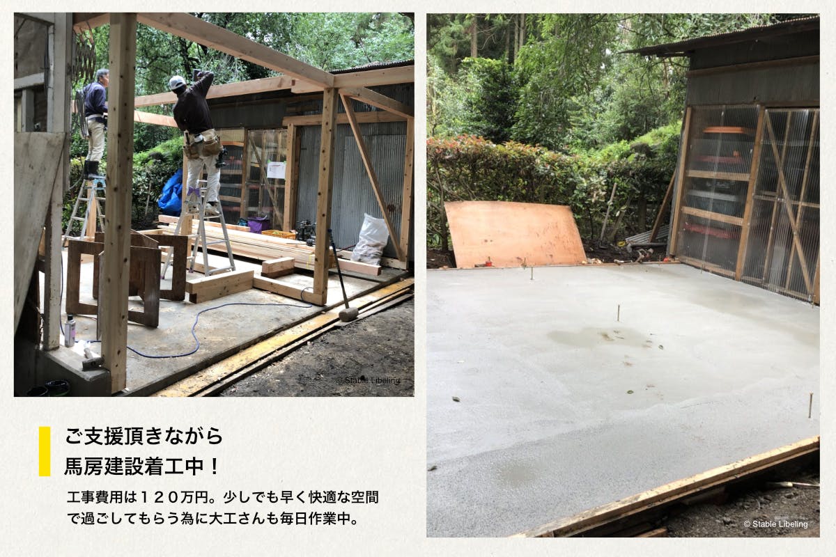 ・新しい馬房を作り快適に暮らしてもらうための資金。(目標支援金120万円必要)*前回 17万3千円集まりました!