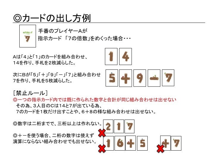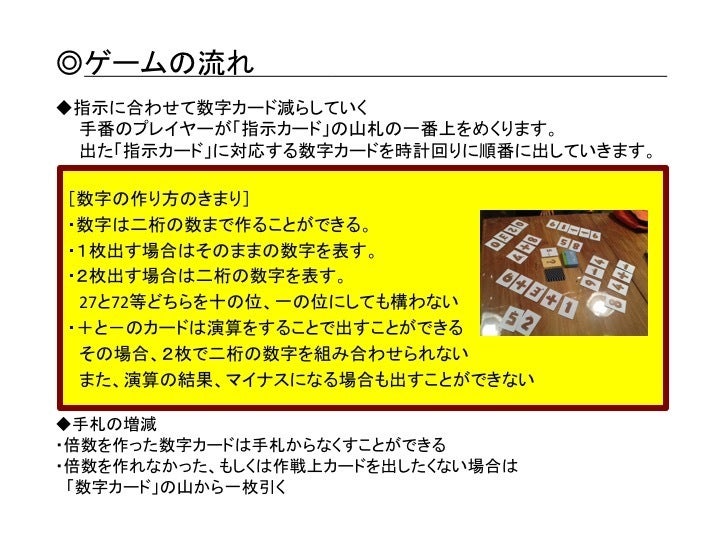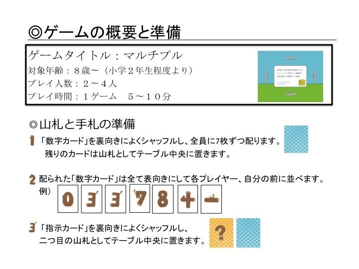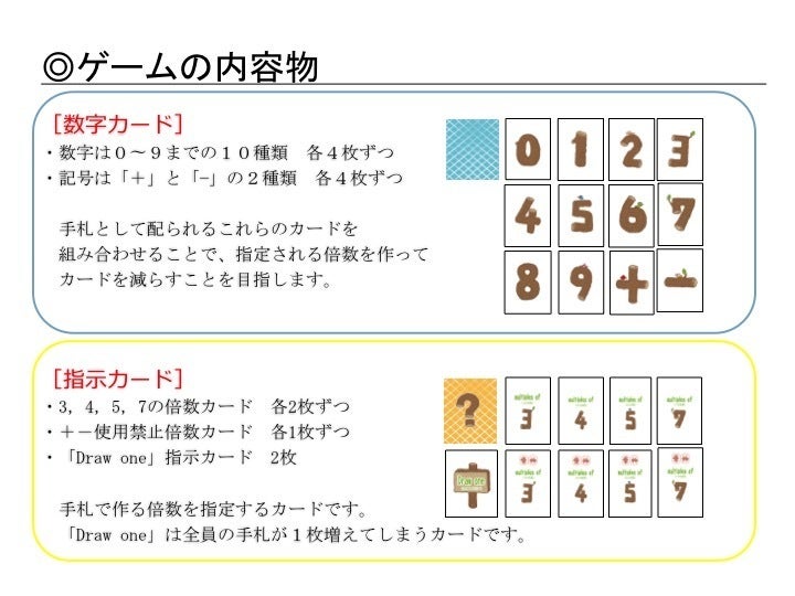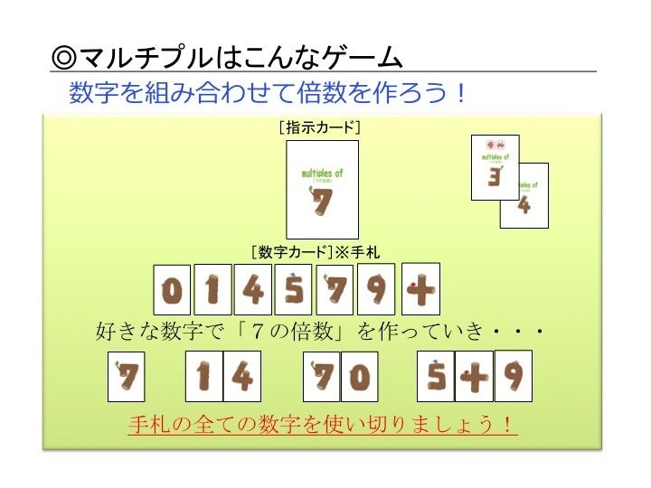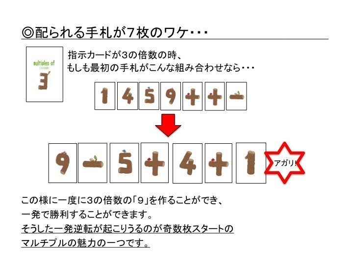 ②「もう一回やりたい!」と言いたくなる1ゲームのプレイ時間が短く、倍数を見つけカードを減らすというパズル的な快感から子供が自発的に“考えたくなる”という要素を持ちます。