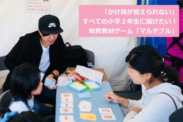 また、オリジナルのボードゲーム製作も行っており、今回の倍数計算カードゲーム「マルチプル」は、地元の市民まつりで偶然知り合った小学校2年生の女の子が相談してくれた「かけ算が覚えられない」という課題をヒントに生まれた知育教材ゲームです。