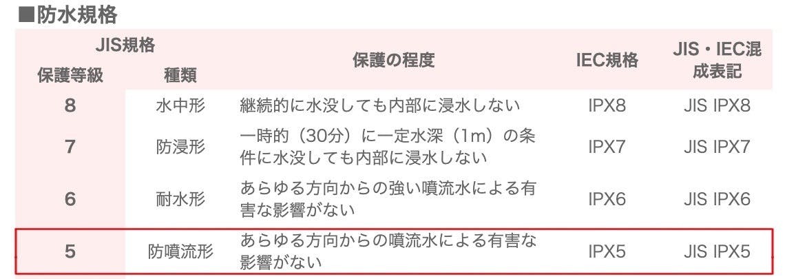 IPX8は最上級の防水規格。水深1.5mに30分浸しても壊れない完全防水です。