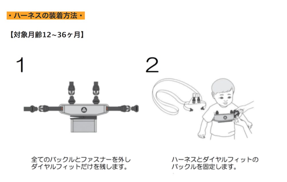 ハーネスは12〜36ヶ月までお使いいただけます。