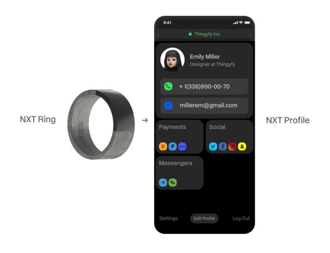 自分の連絡先やビジネスカード情報を渡したいなら、NXT Ringで相手のスマートフォンをタップするだけで完了。相手のメールアドレスをメモしたり、USBメモリを持ち歩く必要はありません。