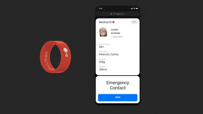 事故や急病で一刻を争う事態になったとします。そのとき、NXT Ringを指にはめていれば、血液型、アレルギー、処方薬、健康状態、緊急連絡先などを、わずか数秒で読み出すことができます。