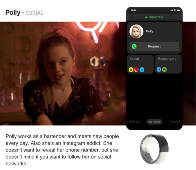 ユーザーのPollyさんはバーテンダーとして働いており、毎日新しい人びとと知り合います。PollyさんはInstagramの中毒者でもあります。スマートフォンの番号は明かしたくないが、ソーシャルネットワークでフォローされるのはかまわないそうです。