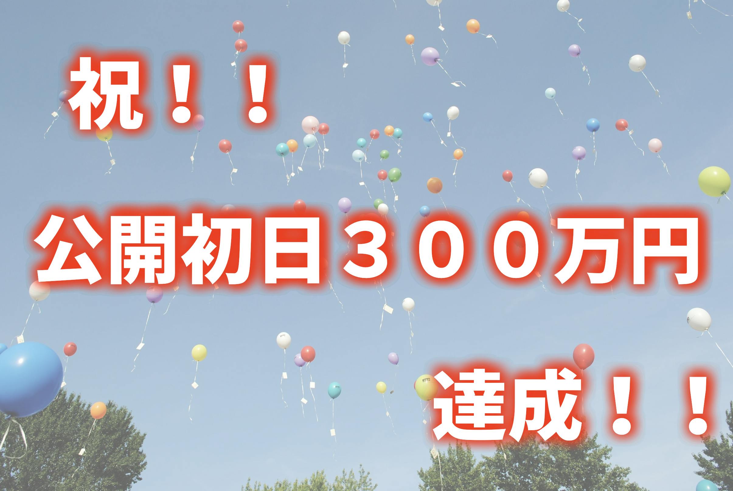公開初日に目標金額の1000%である『300万円』を達成することができました。