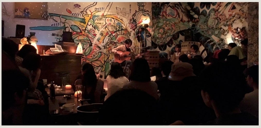 会場は音楽とアートをテーマにしている、地下の隠れ家バー
