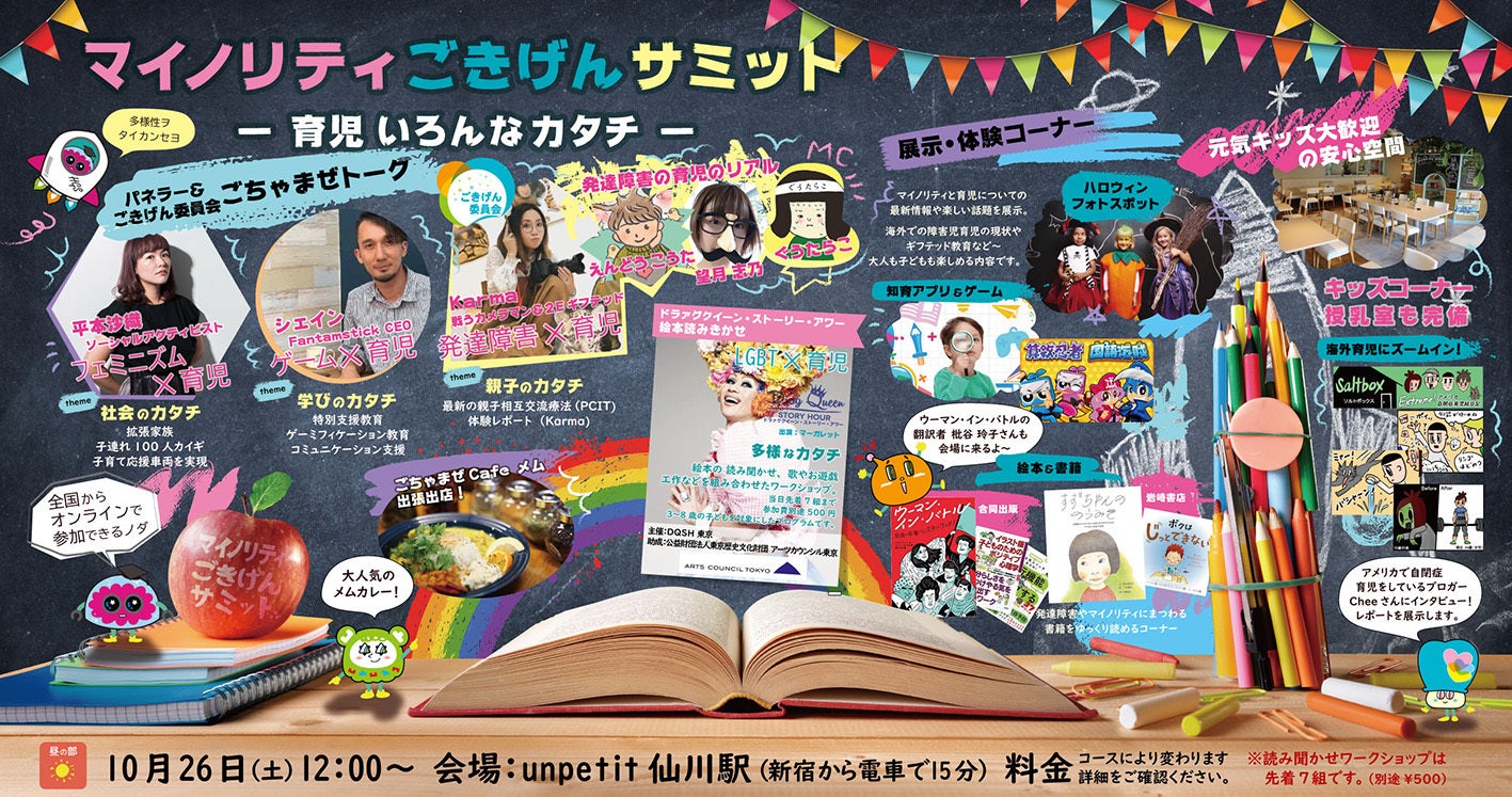 2019/09/24 16:48マイノリティごきげんサミットをやると決めた物の準備に大忙しで報告が遅れてしまいました。大変申し訳ありません。今日から全力で発信してまいります。一発目がこんな情けない報告で申し訳ありません。しかし、ご安心ください!めちゃくちゃイベント内容は充実しています。ではさっそく、活動報告演者のみなさんと打ち合わせをしました。トークテーマごとにご案内します。昼の部のトークテーマ① 「フェミニズム×育児」ゲストスピーカーはソーシャルアクティビスとの平本沙織さんソーシャル?アクティビスト?最初は耳慣れない肩書にとまどいましたが、彼女に会うと「これがソーシャルアクティビストや!!!」と骨の髄までビンビン感じる事ができます。「おかしい」と思ったことを変える為、即行動するパワフルな人です。夫婦での会社経営や3Dプリンタ本専門家、母親などいくつもの顔を持つ平本さん。そのほかにも、さまざまな社会活動をしています。最近では、大江戸線の「子育て応援車両」導入に成功しました。子育て応援スペースは「小さな子ども連れ層も、安心して気兼ねなく電車を利用できるようにする」を目的に設置されたスペースです。トーマス模様のスペースに、子どもも楽しそう。きっかけはTwitterの大炎上でした。満員電車にベビーカーで乗らざるを得なかった経験をつぶやいたところ、SNSで賛否両論の議論が巻き起こりました。「満員電車にベビーカーで乗るなんて非常識!」そんな声を受け考えます。公共交通機関は「みんなのための乗り物」です。その「みんな」の中から、いつの間にか子どもの存在が薄くなっているのでは?炎上からたった約一ヶ月、子どもの安全な移動を最優先に考える為、アクションを起こします。「当たり前」を変えていくパワーは見ているだけで胸がすく思いです。彼女の話を聞くと「社会が変わるのを待つんじゃない、自分で変えるんだ」と言う気持ちになります。底なしのパワーと影響力に、ぜひ触れていただきたいです。そして一緒に考えましょう(もちろんリラックスしながら)平本さんには「フェミニズムと育児」についてお話しして頂きます。育児とフェミニズムは切っても切れない部分があります。育児は母親だけのものではない。今では皆がそう思っているけれど、実際はまだまだ家長制度の中で苦労している方も多いのではないでしょうか。小さな頃から「男女平等」を学ぶことは、子ども自身の世界を平等にしていくでしょう。フラットな社会づくりの第一歩。家族で考えられる時間になると思っています。今回、嬉しい応援も。ノルウェー発の「民主主義を求め闘った女性たちの歴史を描いたコミック」2018年ノルウェー文化省児童書賞最優秀賞(ノンフィクション部門)2019年ボローニャ・ラガッツィ賞優秀賞(ノンフィクションの部)日本を含む22カ国で翻訳される注目の1冊ウーマン・イン・バトルこちらの翻訳者である枇谷 玲子さんが会場に来て下さいます。沢山のフェミニズム本を翻訳されている方です。国際的な視点を持った枇谷さんのお話しもお伺いできればと思っています。フェミニズムを子どもにもわかる表現で学び今後の育児に新しいアプローチを増やしませんか?フェミニズムってなんだか怖い、という方も是非。ウーマンインバトルは当日イベントで観覧・購入可能です。私も持っていますが、胸の熱くなる書籍です。漫画形式で読みやすいですよ。他にもマイノリティ本・発達障害やLGBTの書籍もご用意していますのでぜひ会場で手に取ってご覧ください。次は、もう一人のゲストパネラーをご紹介します! もっと見る