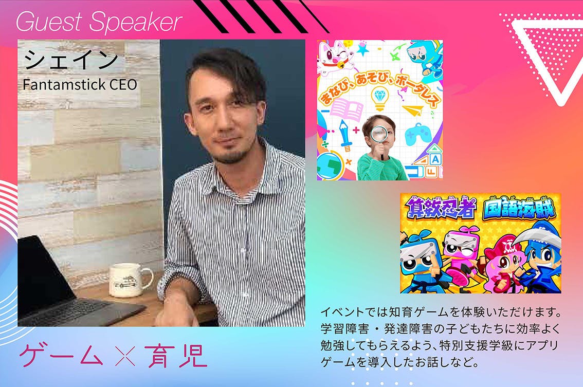 2019/09/26 17:09ゲームって遊びじゃないの?ゲームには多くの人が「時間を割いてでもやりたい」と思わせるような仕組みがあります。それを遊びだけではなく、様々な分野で活かすことを「ゲーミフィケーション」と呼びます。例えば、歌や手遊びでアルファベットや九九を覚えたり、カードの取り合いでことわざを覚えたり、私たちも知らぬ間にゲームで学ぶことを実践していますよね。最近だと、ポケモンGOやドラクエウォークなどが話題です。引きこもりだった青年がゲームをする為に外に出るようになった、運動嫌いが楽しみながら歩いて健康になったなど、ゲームが新しいアクションを起こすキーになり、さらに継続することにつながっています。効率的な学び発達障害はもちろんですが、すべての子どもにとって「楽しく学ぶ」というのは効率的です。今回はそんな子ども向け学習アプリ事業に5年取り組んできた、ゲームアプリ開発会社の「ファンタムスティック」の社長、シェインさんに詳しくお話を伺います。(ご自身のお子さんの為にゲーム開発を始めたシェインさん)ファンタムスティックでは5年前からゲームを学習に取り入れる取り組みをしており全世界の子どもたちに14億問題を解答してもらい、学習効果の成果報告を受け、ゲームを使った学習の成果を実感しているそう。 (世界で人気の算数忍者)「教室にゲーム学習を入れたら、教育革命が現実的になる」とおっしゃっています。ゲーミフィケーションを使い、学習継続の価値を作ることができたら、誰しもが「一人で学習を続けていける能力」を身につけられます。それは、将来的に教室という学びの場を大きく変える事ができるとというわけです。現在少子化にも関わらず、日本は不登校が過去最高になりました。ゲームにより学校にいけない子どもも、自宅で効率よく学ぶことができるようになるかもしれません。学習障害・発達障害の子どもたちへ効率の良い授業を!小学校の特別支援学級に算数忍者アプリを導入発達障害のある児童にとって教室に座り、退屈な授業を受けるのは大変な困難です。しかし、ゲームを使うと…すばらしい成果があったと教師から話を聞いたシェインさんのお話しです。シェィンさんのブログ当日は最新の学びについて、開発者目線、お父さん目線、交えつつお話を伺う予定です。会場ではアプリ体験コーナーも用意していますので、お子さんと楽しんでみてください。もちろん、大人だけでもOKです。私も、おそらくですが算数LDです。数字が頭に全く入ってこず、九九も7の段までしか覚えていません。算数に苦手意識を持たない気持ちだけでも、大人になったら生活が楽になると思います。 もっと見る