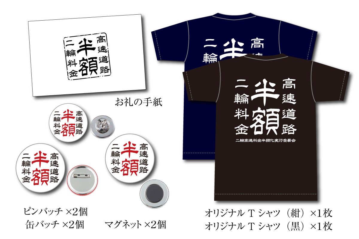二輪高速料金半額化のTシャツ(黒)をお送りさせていただきます。