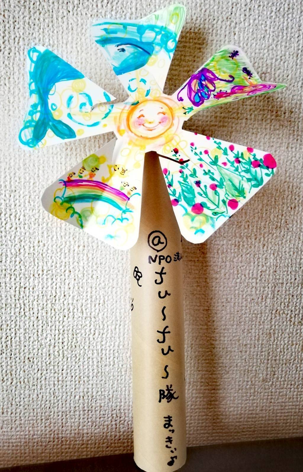 現在、fu~fu~隊は、各地で「自然エネルギー体験の工作(チョキチョキ発電かざぐるま)」「心で感じる体験学習プログラム 『6感学習』」に取り組んでいます(詳細は「これまでの活動」参照)。