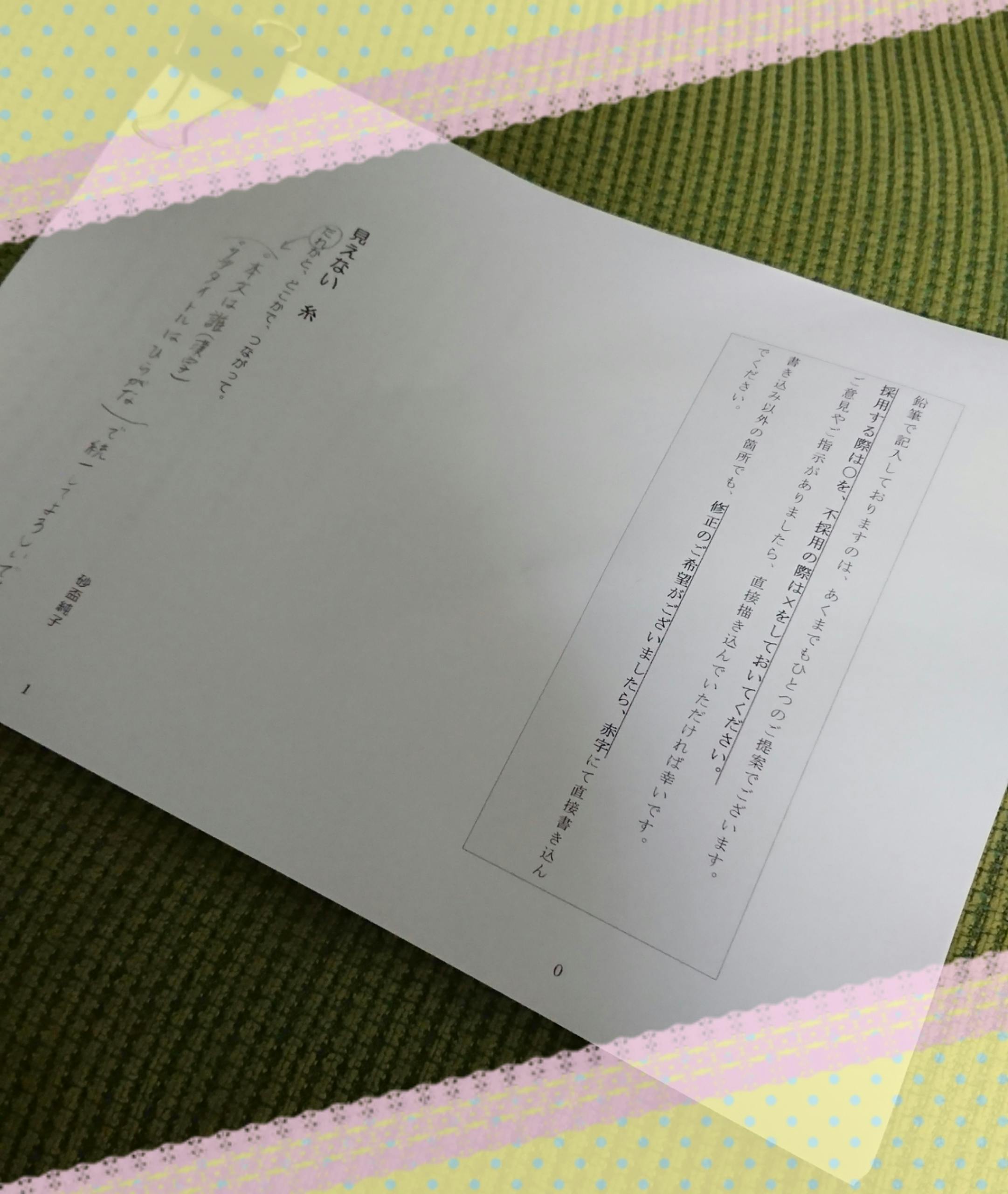 文芸社 編集部の方から初回校正が届きました。