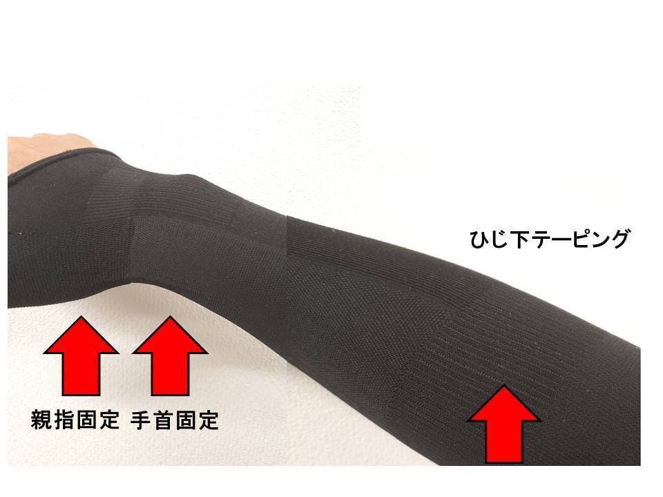 ★手首とひじ下部分のダブルテーピングでひじの故障予防。