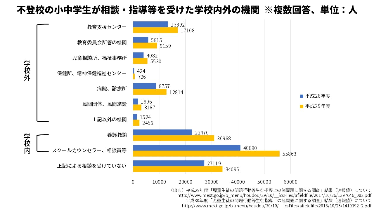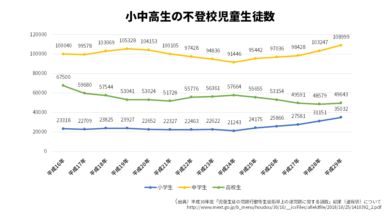 原因は、友達関係だったり、不安・無気力だったりと様々な理由があり、データによっても結果が異なるため、この不登校の問題を正確に把握することはとても難しいです。