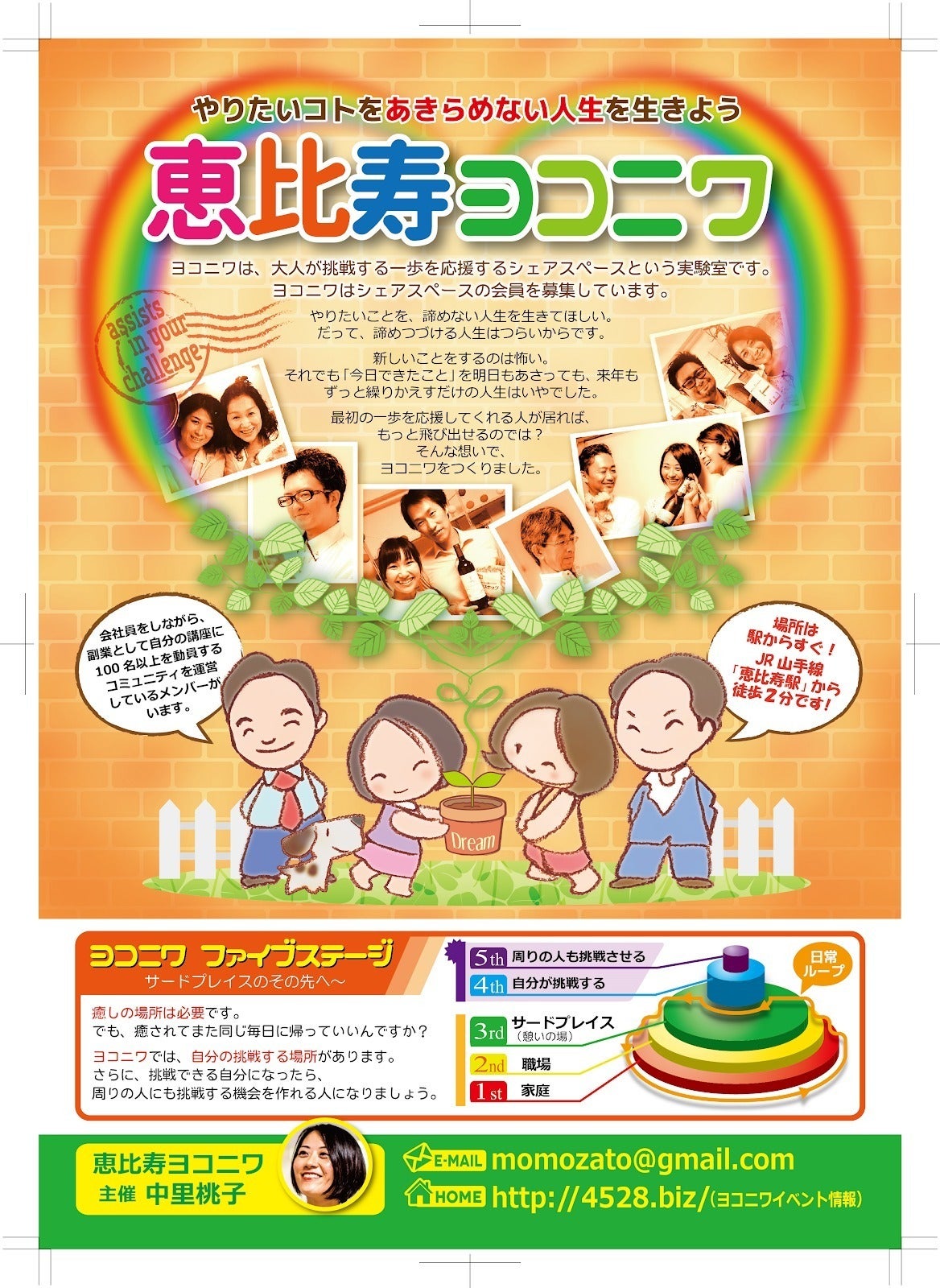 ビブリオバトルの仲間が運営していたスペースが倒産したことをキッカケに、『恵比寿ヨコニワ』という会員制の貸しスペースをスタートしました。