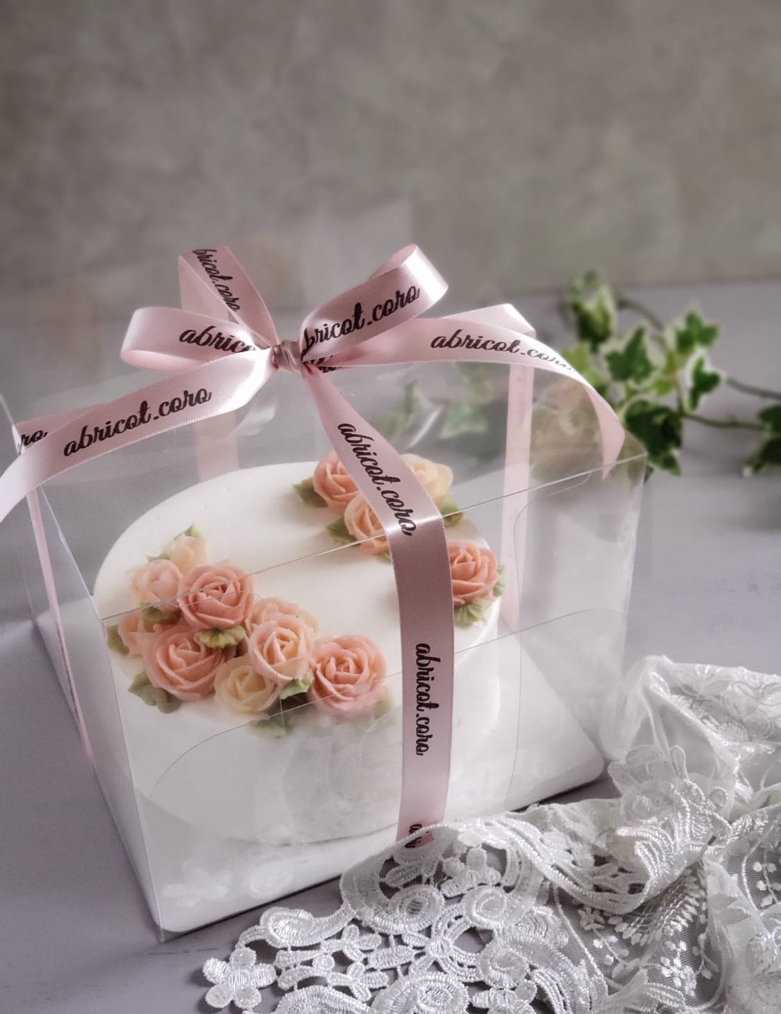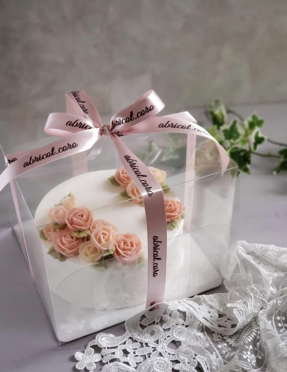 フラワーケーキに限らず、高さのあるケーキを入れても余裕のあるクリアなケーキ箱を広めたいです。