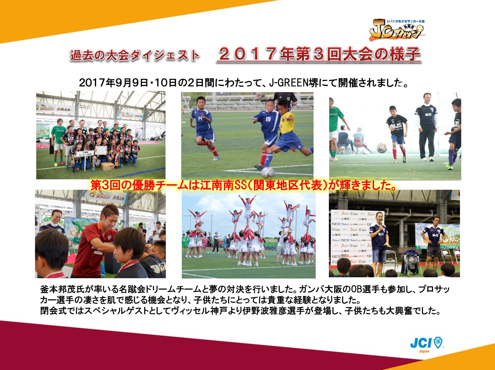 「第5回JCカップU-11少年少女サッカー全国大会」もその事業のひとつであります。
