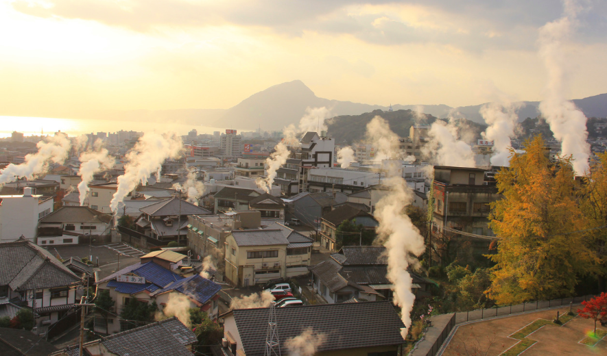 別府市は言わずと知れた温泉地です。源泉数、湧出量ともに日本一を誇り、国内にある源泉の約1割にあたる2,200あまりもの源泉があるといわれています。大地から立ちのぼる「湯けむり」は別府を象徴する風景として市民はもちろん観光客からも親しまれています。