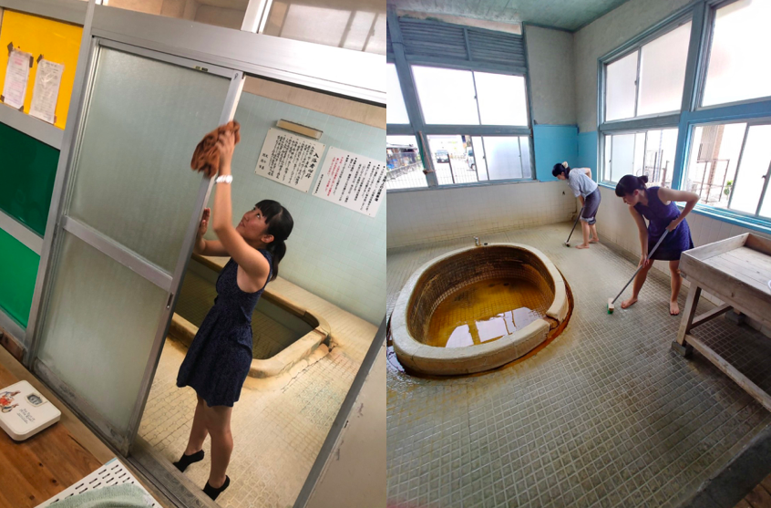 このままでは、「この素晴らしい「温泉文化」が廃れていくのではないか?なには私に出来ないか?最も温泉への感謝を伝える行動はなにか?」考えました。それをカタチにするため現在女子高生でつくる「湯部」を設立。
