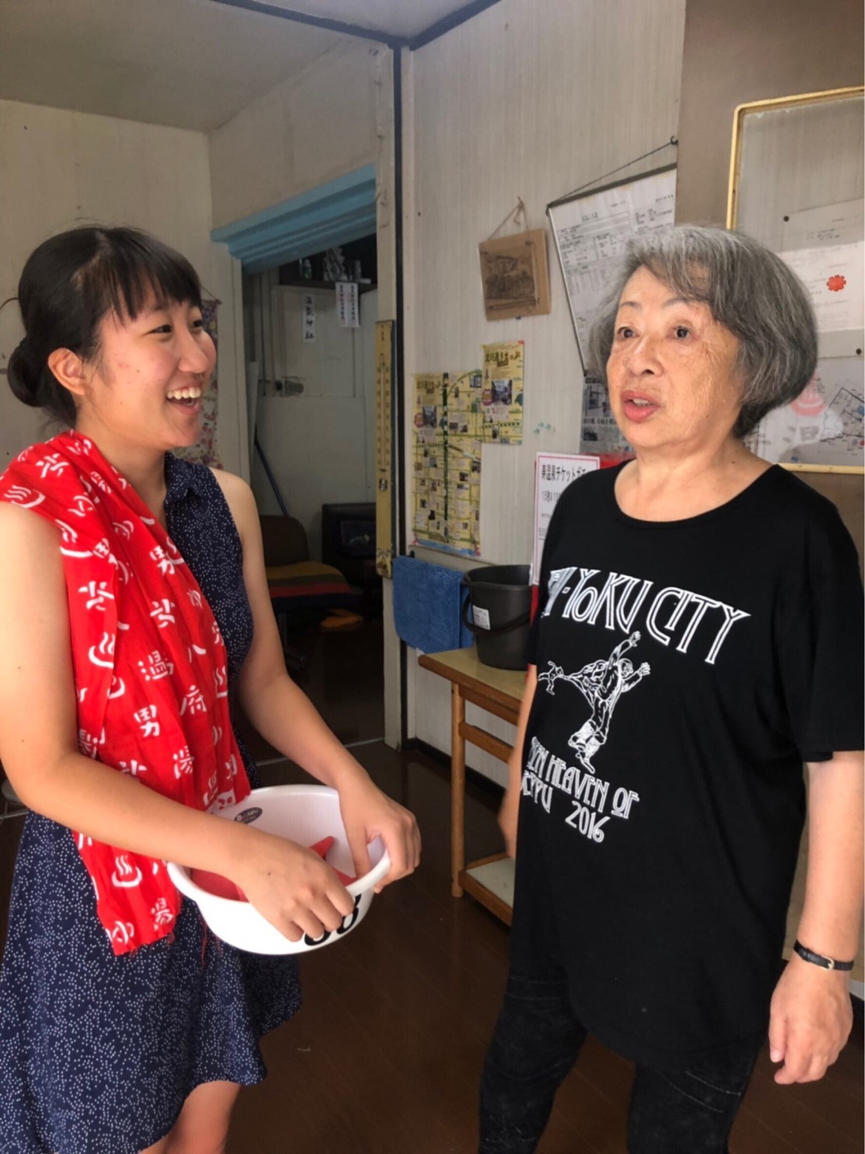 共同温泉にはその地域のおばちゃん達がやってきます。そこで行われるのは井戸端会議ならぬまさに温泉会議。髪を洗いながら、泡を立てながら、世間話や自分の失敗談を話しています。新参者の私は聞いているだけかと思いきや、どう思う?!と輪に入れてくれる(入れ込まれる)のは面白いものです。