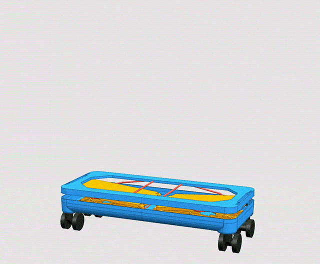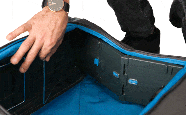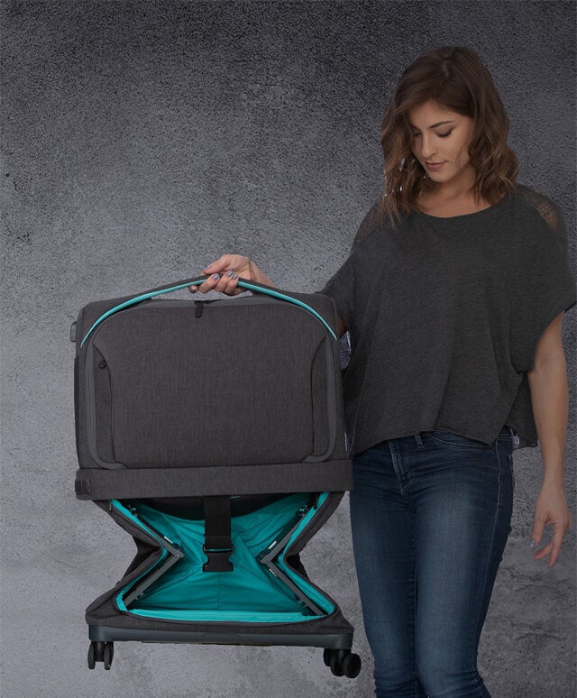 ハンドルを引っ張り、4つ角にあるホルダーにロックすれば、全体を安定させフルサイズのスーツケースに早変わりします。