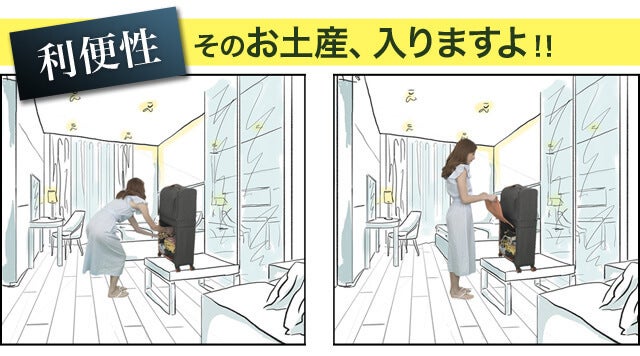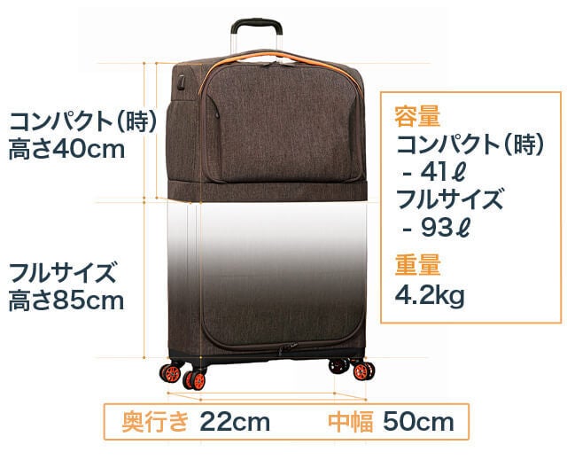 時と場合に応じて選択できる柔軟性。サイズを調節できる画期的なスーツケースです!