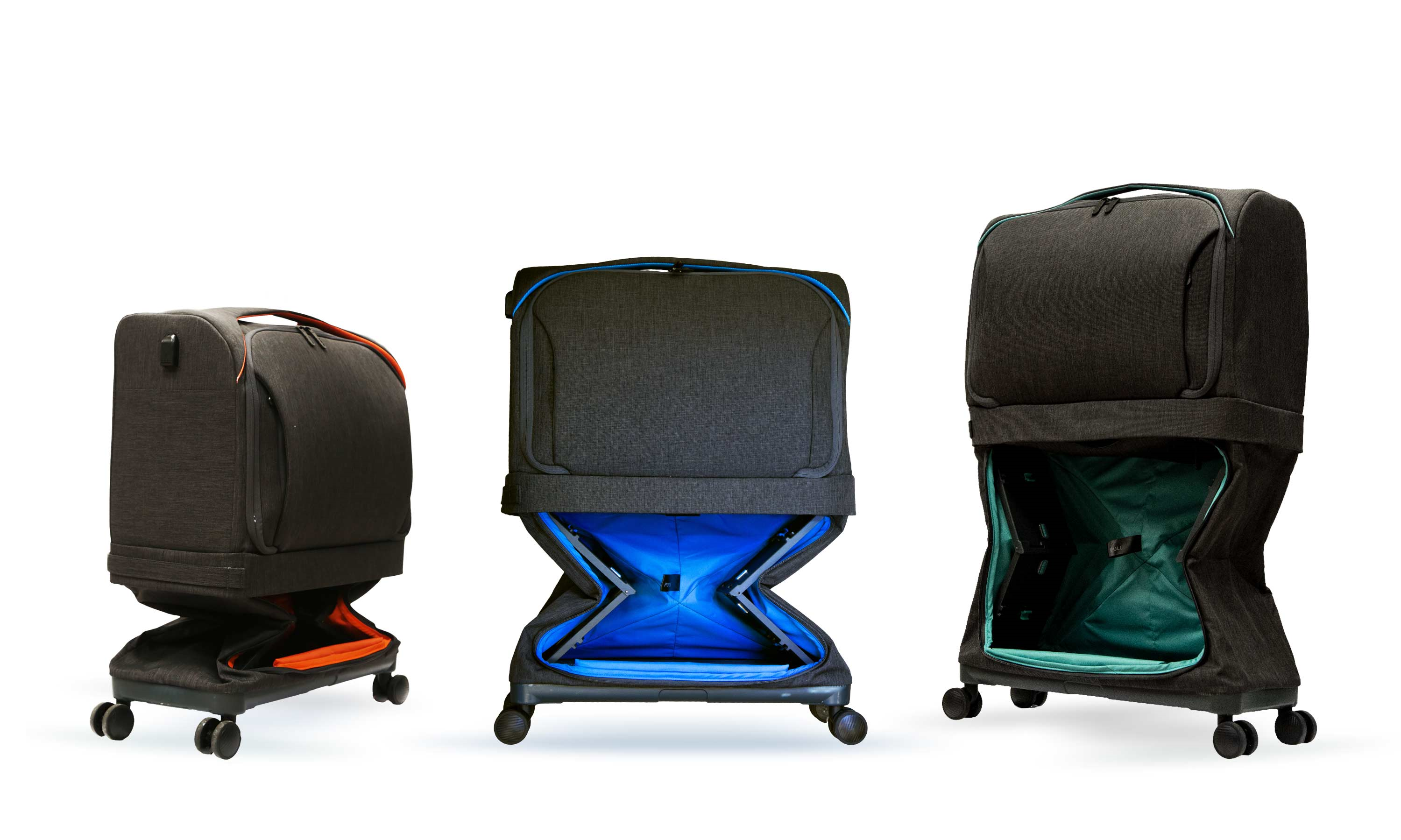 数か月間の試行錯誤、商品開発、試作製作、検証を経て、アメリのクラウドファンディングキャンペーンで商品開発の資金援助を募りました。最初の商品は、「フグ」のように膨らむメカニズムによって拡大する構造でした。メーカー名である「Fugu」luggage」の由来でもあります。