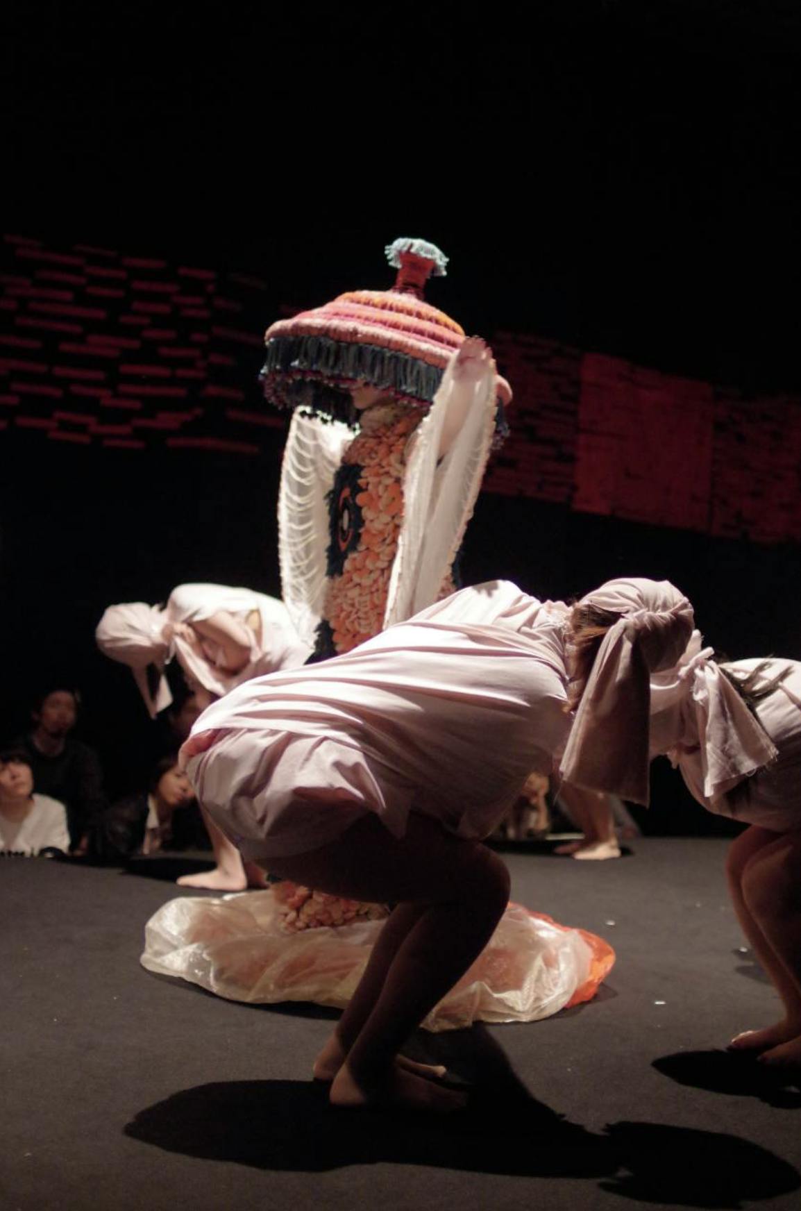 テキスタイルパフォーマンスとは毎年11月に行われる「多摩美術大学芸術祭」にて、舞台、衣装、演出全てをテキスタイル専攻3年生を中心とする総勢160人で作り上げるパフォーマンスショーです。