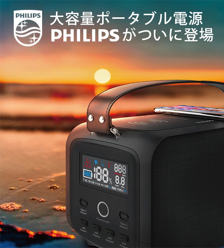 「DLP-8088NC」はPHILIPS社が送り出す、信頼・安全・安心のポータブル電源です。128,000mAhを誇る大容量バッテリー&フル充電後一年間経っても約85%が使用可能な革新的なプロダクトです。
