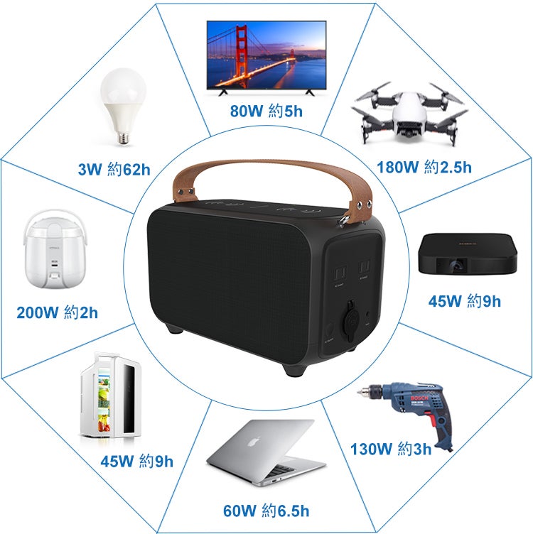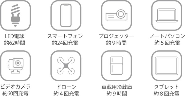 夏のアウトドアでは電源式モバイル冷蔵庫・扇風機・LEDライトなどの電気機器に電気を供給。再充電にも十分なバッテリー容量を搭載、家族でのキャンプやパーティーを思う存分楽しむこと可能です!