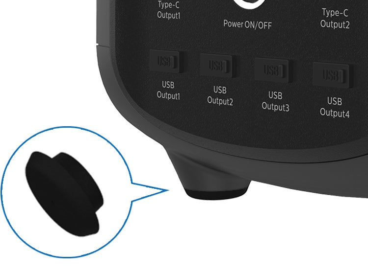 底面の4隅には丁寧に滑り止めが付いており、安定に設置することが可能です。ゴム素材の防振効果により本体を保護しています。