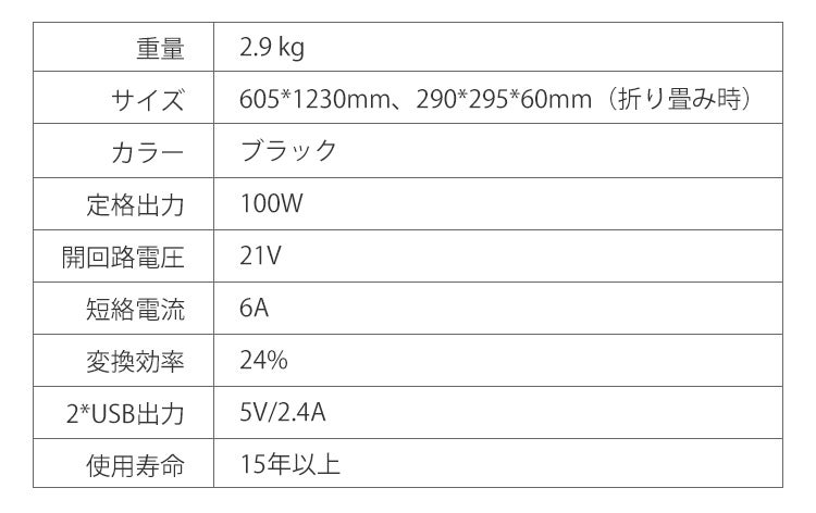 100wソーラーパネルのリターンもご用意しております。折りたたみ式はコンパクトで持ち運びにも便利で