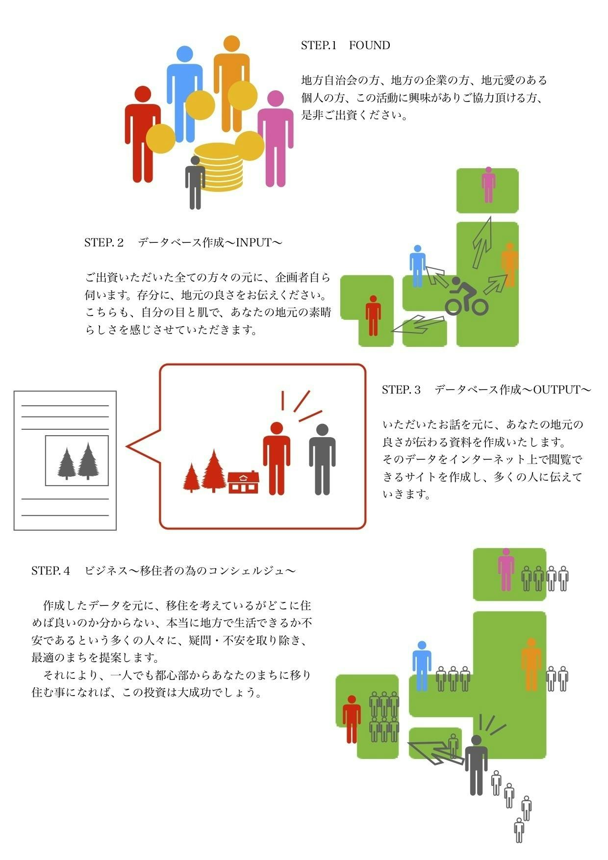 地方自治体の方、地元愛があり地元に人を呼びたい方、地方の企業の方、もしくは移住を考えていて「この街のこんなところを見てきてほしい」という方、是非投資して下さい。決して損はさせません。
