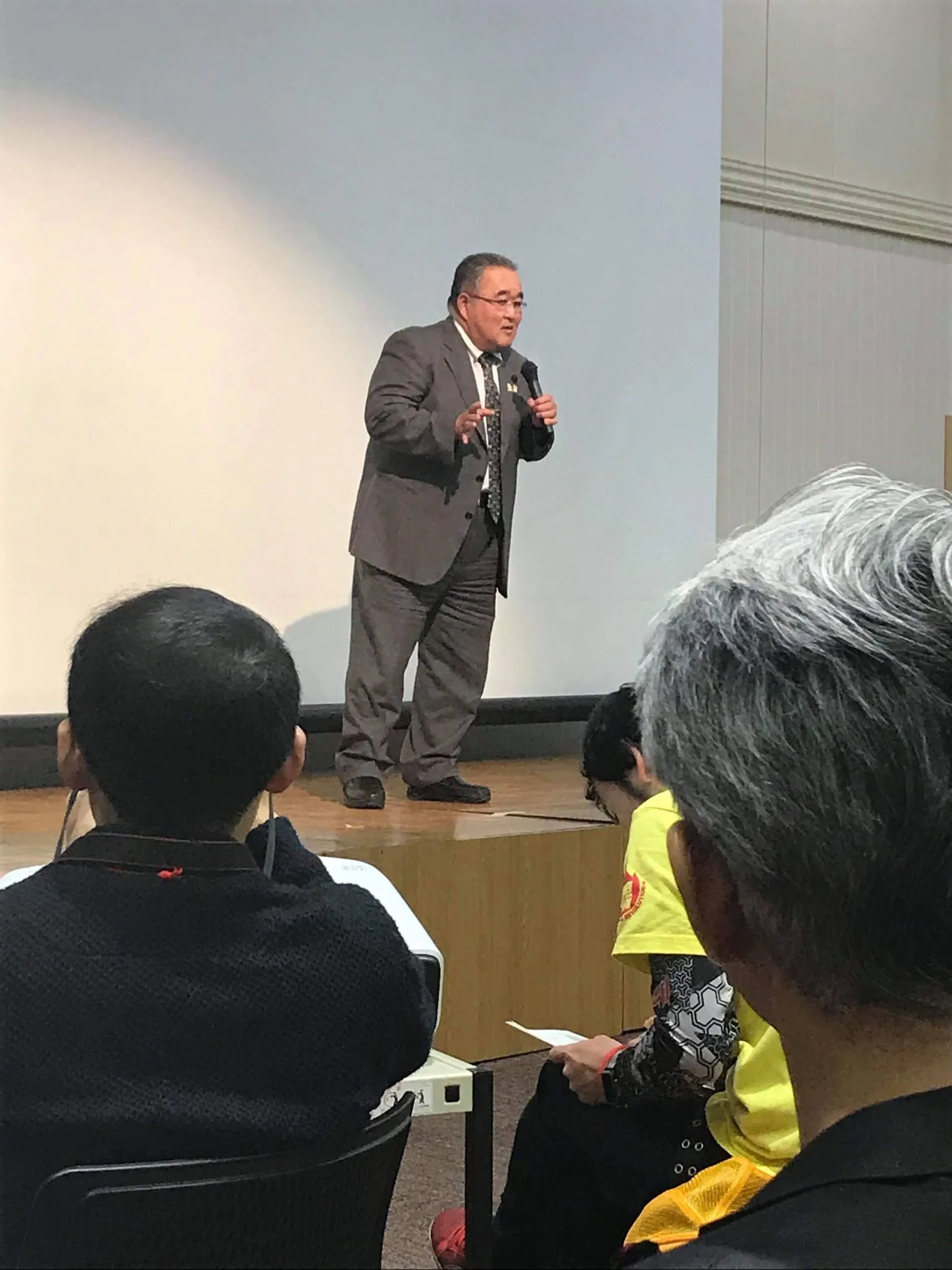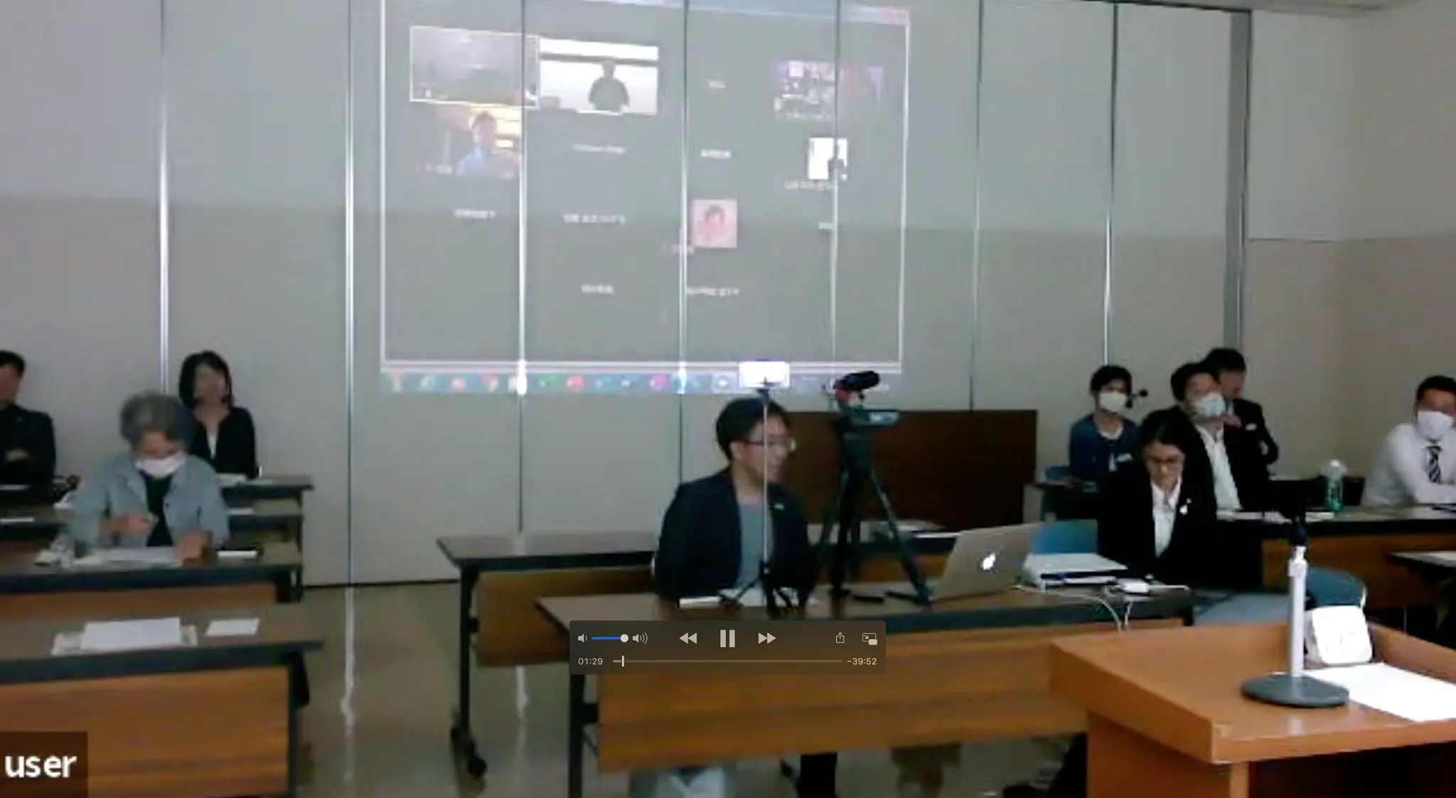そして会場の壁にzoom参加者をプロジェクターで映し出し講演会場のように演出し、発信する人の気分を盛りあげます!